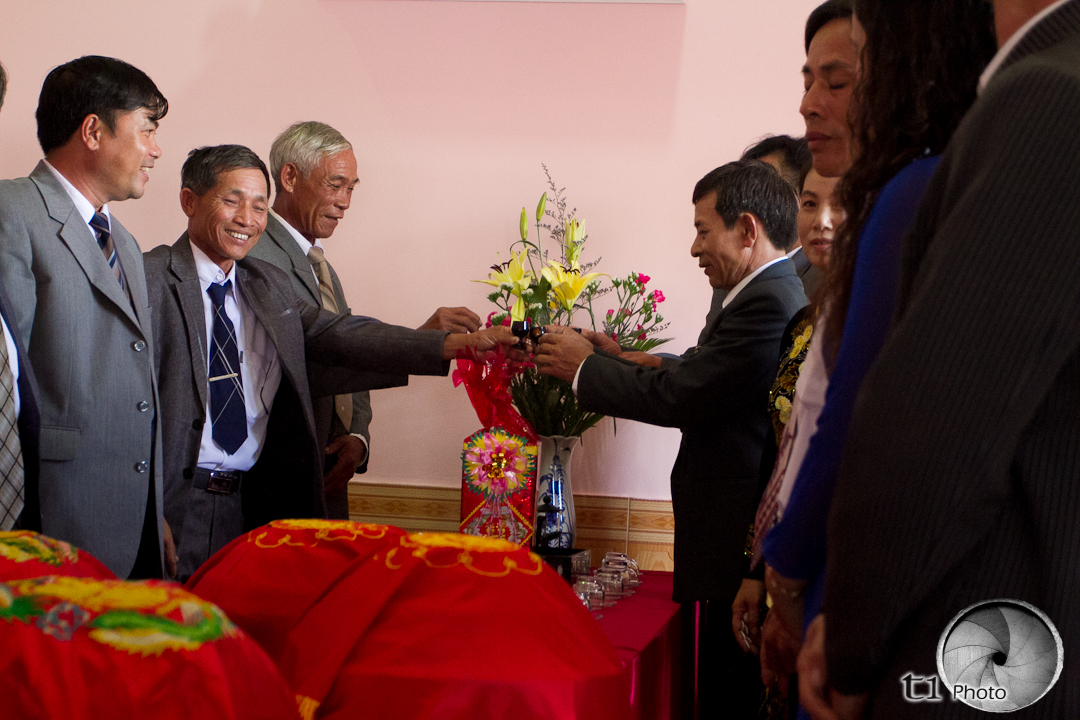 Our day starts off not much different from any of the others, but I did catch some cool sunrise pics today, and then it was off to met my boys downstairs for coffee with the locals. Not quite as exciting as the previous day, but we were out in the sticks this morning, so that is only to be expected.... it was actually kind of nice not having to deal with all street vendors while we sat and enjoyed our coffee. After meeting the rest of the Team for breakfast we loaded up and headed out for Pleiku.... within a half hour of our trip, I get to do something I really wanted to do but had no clue how to pull it off.... well, it all just kind of fell into place and we spot a Vietnamese wedding about to take place. We pull off the road and with Camera in hand we walk up with Tiep, he says something to one of the parents of the couple and they welcome T1 with open arms, Literally! Their weddings are much different then ours and we basically caught the arrival of the couple at the reception which I guess is the first time everyone gets to see them.... very cool!